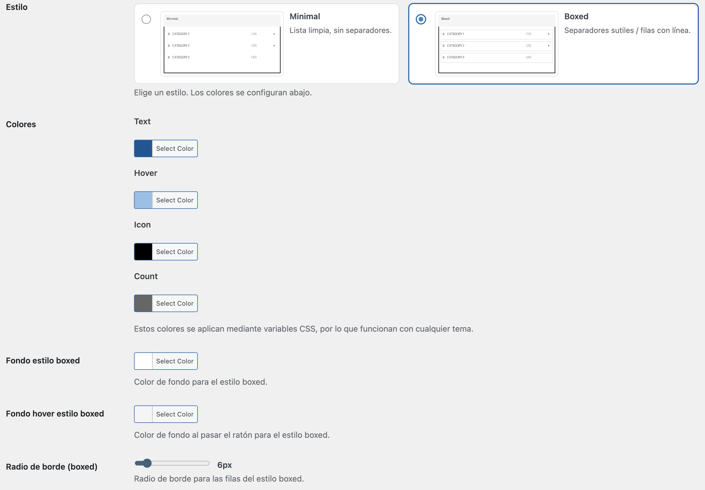 - preset → Choose a preset style (Clean / Boxed).